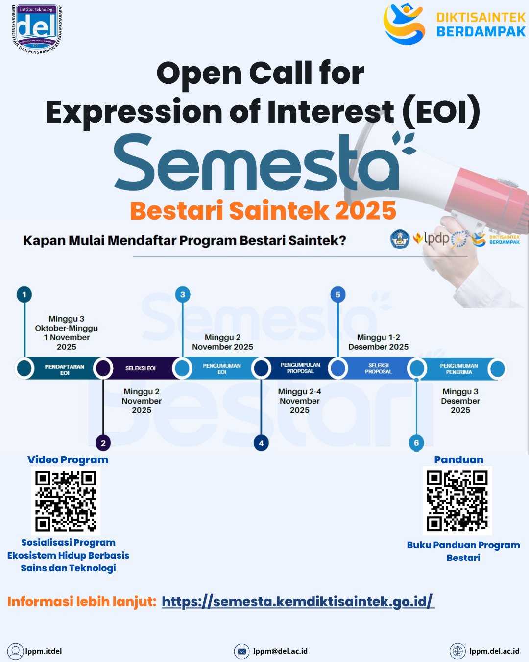 Batas pengumpulan Expression of Interest (EOI): Minggu pertama November 2025